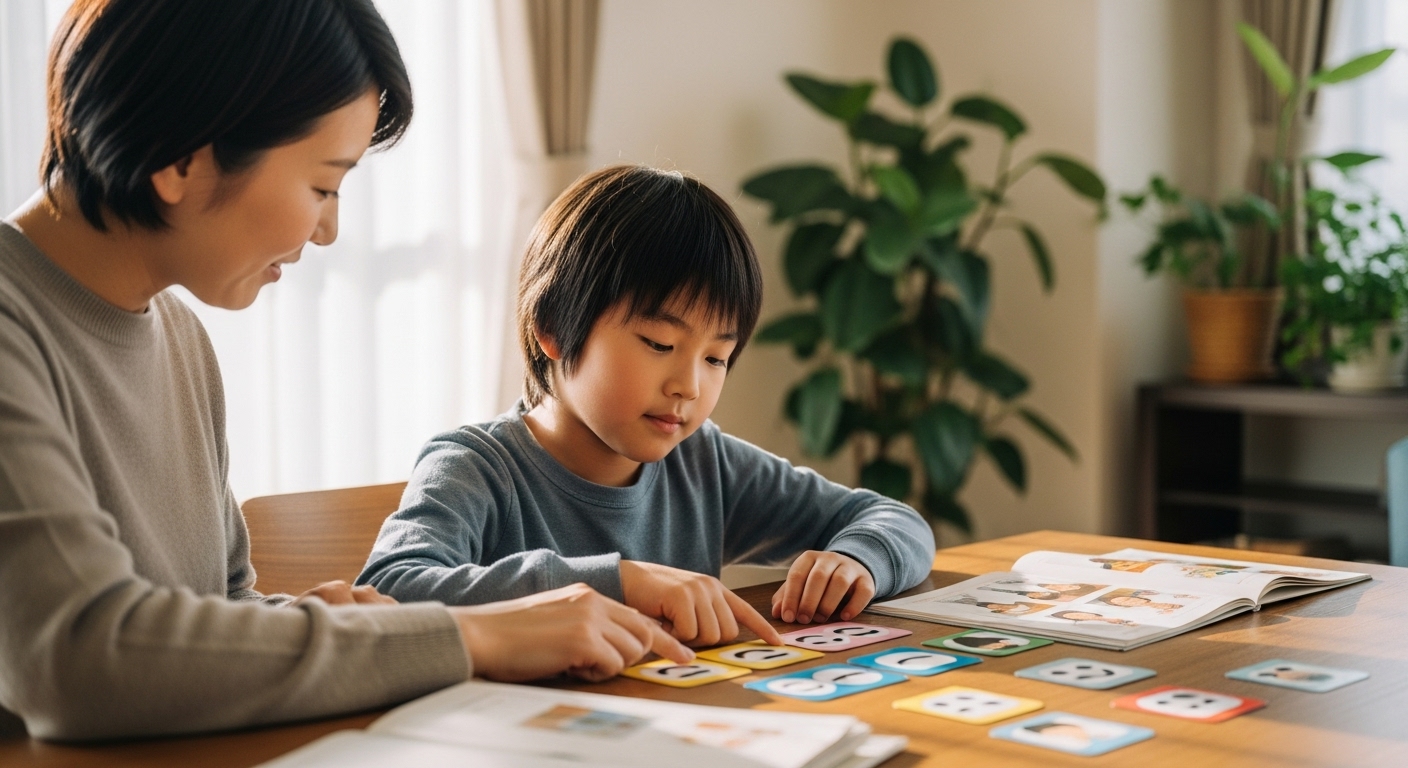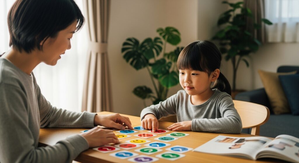 家族での会話の中で、子どもが話す機会を自然に作ることも大切です。ただし、無理に話をさせようとするのではなく、子どもが話しやすいタイミングを見計らって話題を振るというさりげない配慮が効果的です。また、家族が楽しそうに会話している様子を見せることで、話すことへのポジティブなイメージを育てることもできます。