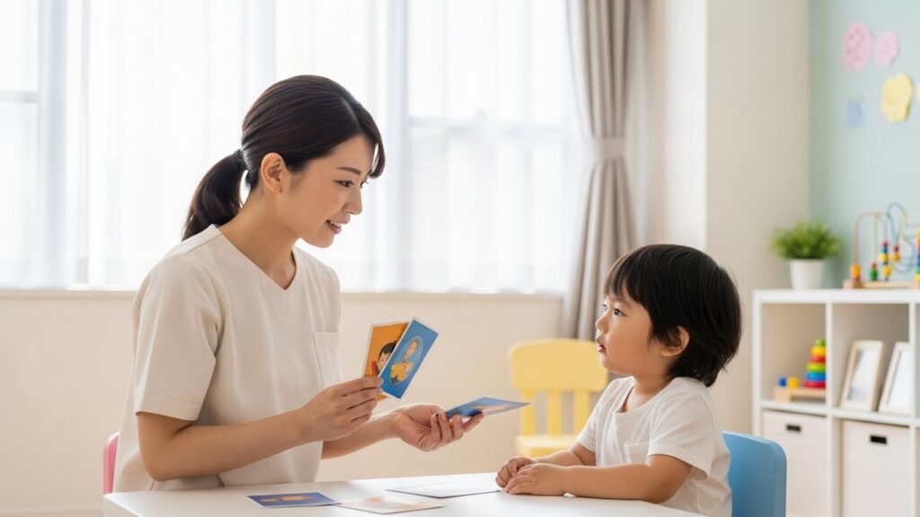 言葉自体は理解しているが言葉の表出が遅れる「表出性言語障害」のお子様に対しては、言葉を使ったゲームや表現の練習を積極的に行うことが効果的です。表出性言語障害は言語理解は良好なのに発語が遅れるタイプで、就学前には約90%が正常範囲に追いつくと言われています。